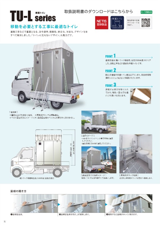 ハマネツ製 屋外仮設トイレ 車載トイレ TU-Lシリーズのカタログです。