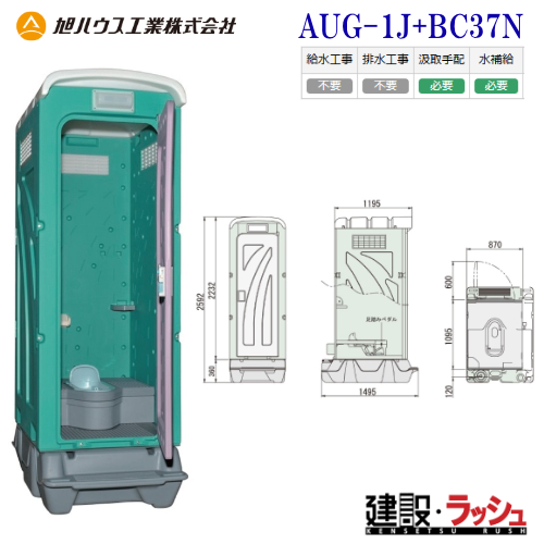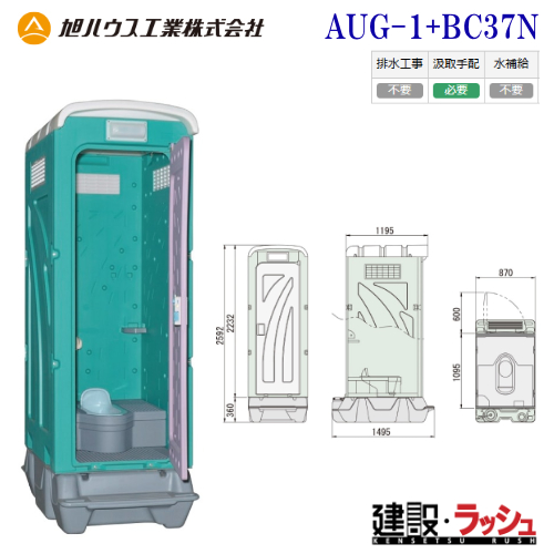 【旭ハウス工業】 仮設トイレ 兼用汲取便槽付 [AUG-1+BC37N]